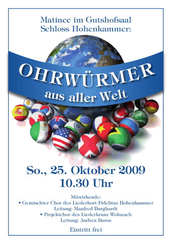 Die Matinee im Schloss Hohenkammer hat bereits seit Jahren Tradition und ist nicht ohne Grund fester Bestandteil des Kulturprogramms von Hohenkammer. Unter der Leitung von Manfred Burghardt ging es zum Thema „Ein Lied geht um die Welt“ auf zu einer musikalischen Weltreise. Dieses Mal gab es auch eine kleine Premiere: Tochter Agnes dirigierte erstmals in der Geschichte der Matinee zwei Stücke selbst.